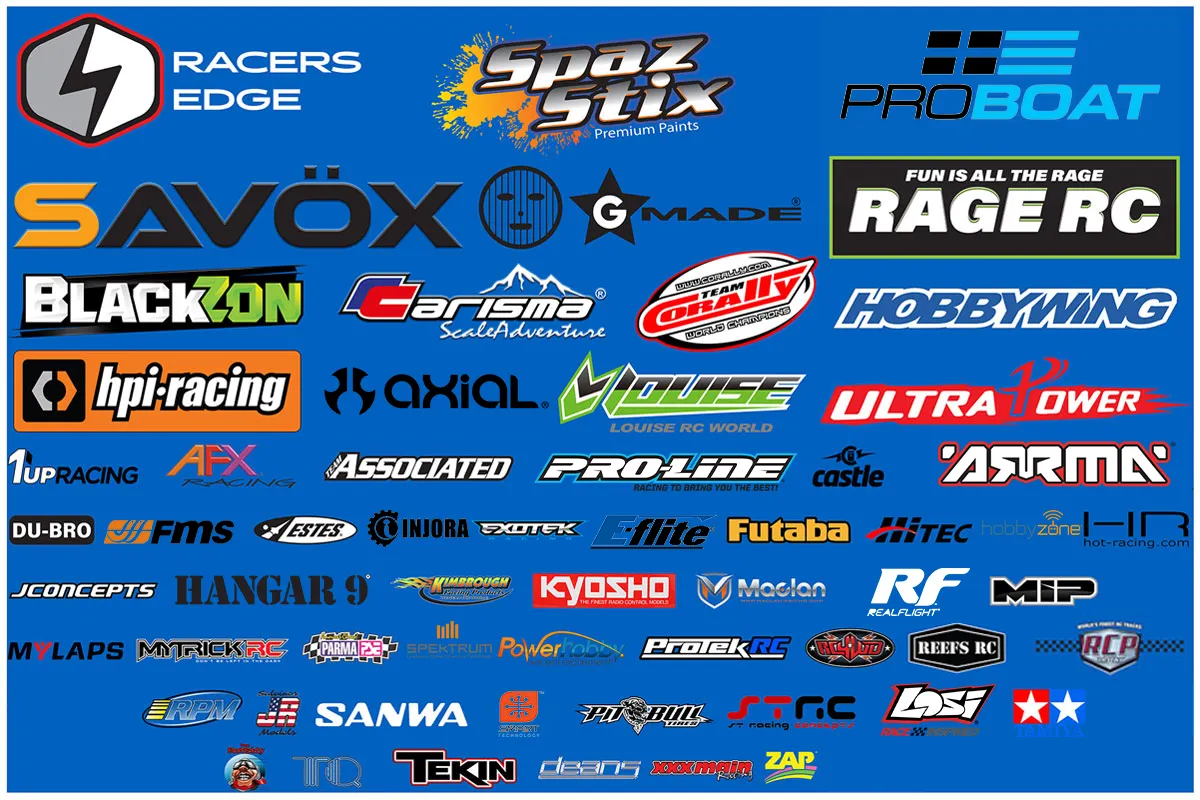 HRP utilizes our expert staff and over 35 years of RC industry experience to ensure that we carry only the most trusted brands. We also have a wide variety of exclusive brands, such as Rage R/C, Racers Edge, Savöx Servos, HPI Racing, Team Corally, Spaz Stix® Premium Paints, Gmade, CEN Racing, Hobbywing, Carisma, Estes Rockets, Ultra Power Chargers and many more. click here.